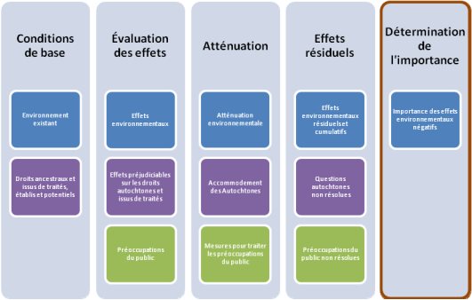 Pendant la préparation de l'EIE, le promoteur est invité à intégrer les résultats de la consultation des Autochtones et du public dans l'évaluation des effets environnementaux et des mesures d'atténuation de ces effets à l'étape adéquate de l'analyse de l'EE indiquée à la page suivante (Figure 1). Le promoteur doit s'assurer que les préoccupations du public et des communautés autochtones sont bien documentées dans l'EIE. Le promoteur devra identifier et expliquer toute question ou préoccupation non résolue dans le cadre de son analyse des impacts du projet.